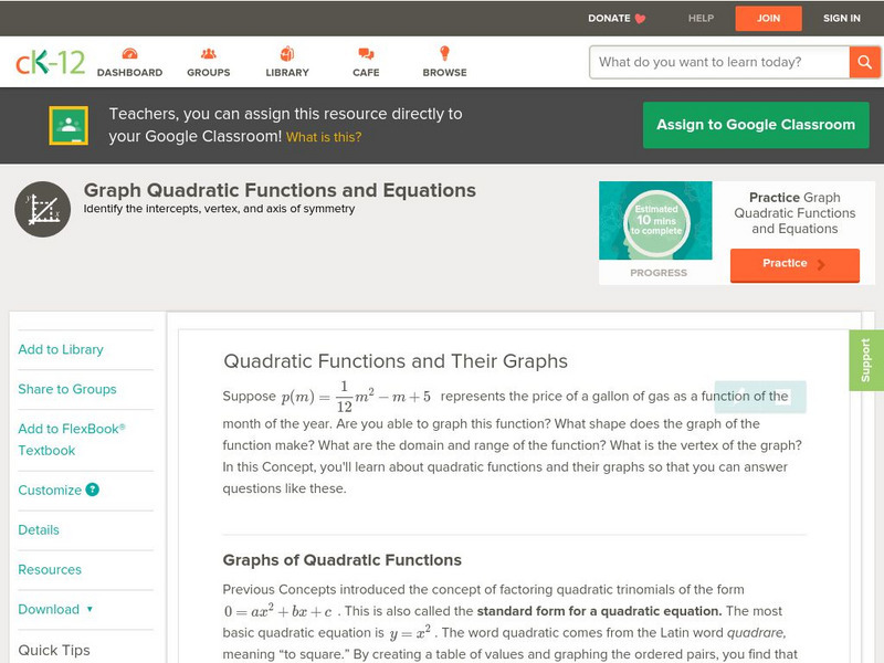 Ck 12: Algebra: Quadratic Functions and Their Graphs