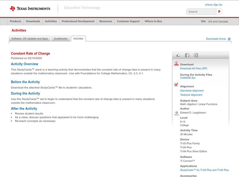 Texas Instruments: Linear Functions: Slope as Rate of Change