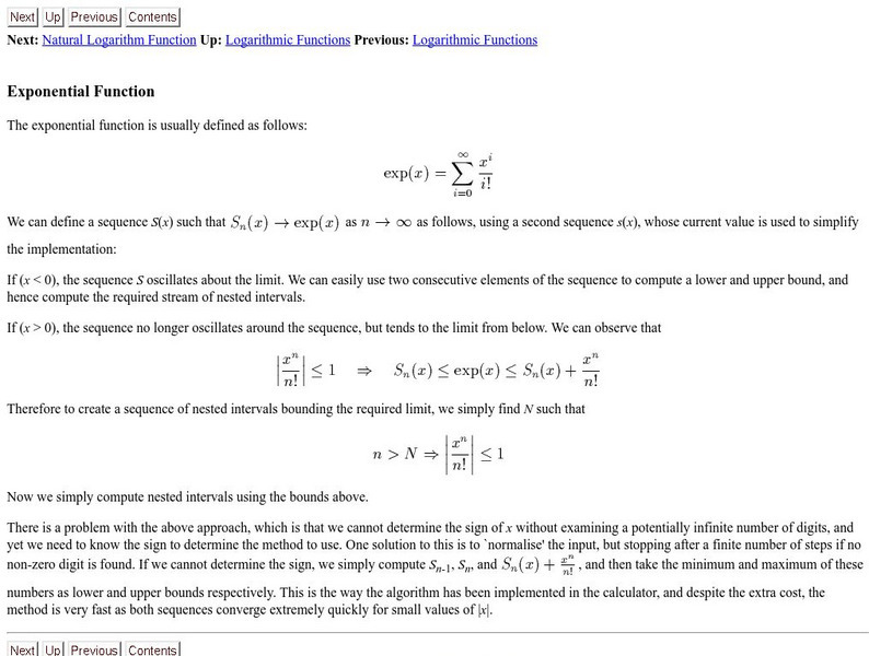 This site explains the Exponential and Logarithmic Functions and has links to plots of the functions.