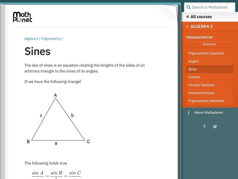 Defines and examines the law of sines through examples and a video lesson. [2:02]