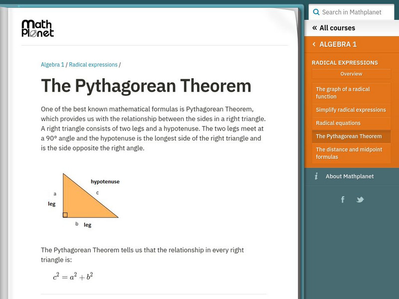 Math Planet: Algebra 1: The Pythagorean Theorem