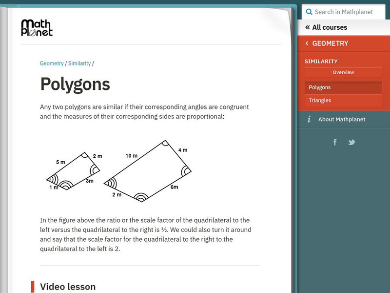Provides an explanation, examples, and a video lesson all related to similar polygons. [0:54]