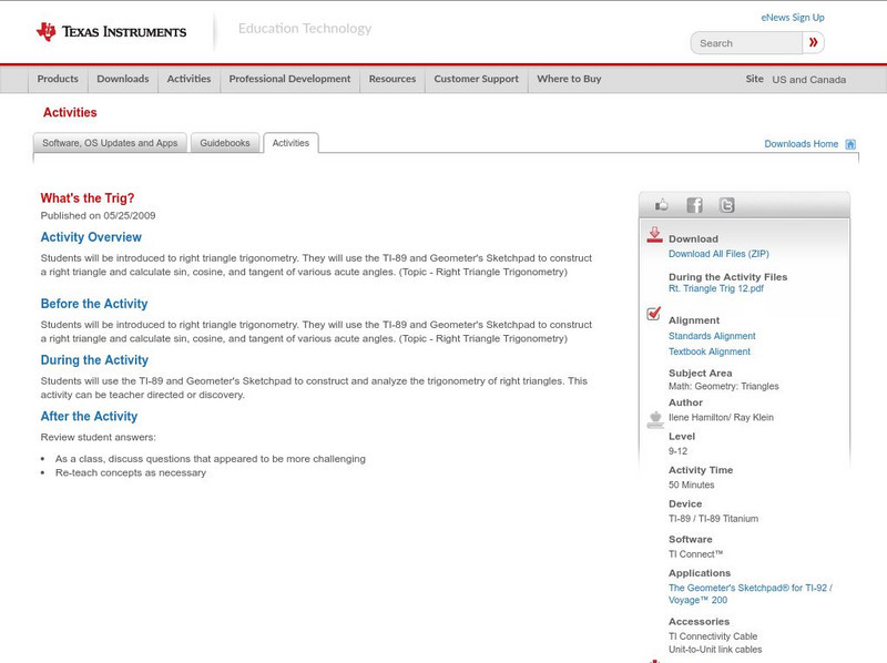Texas Instruments: Sin, Cos, and Tan of Right Triangles