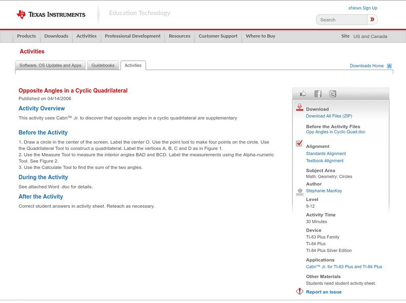 Texas Instruments: Opposite Angles in a Cyclic Quadrilateral
