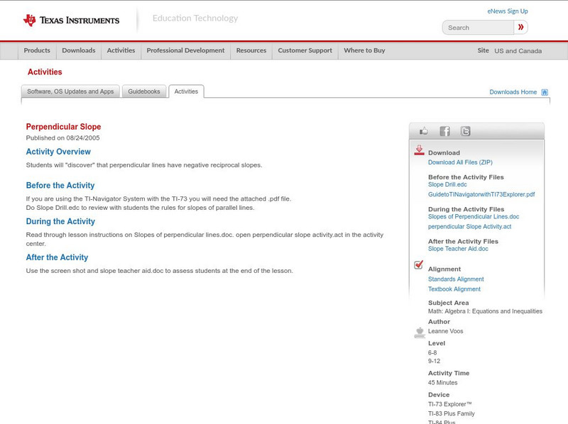 Texas Instruments: Investigating the Slopes of Parallel and Perpendicular Lines