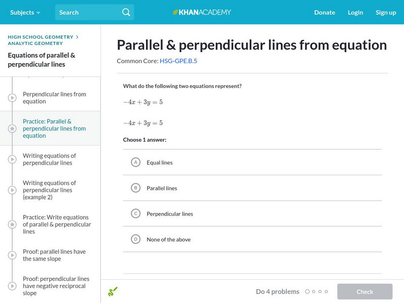 Khan Academy: Parallel and Perpendicular Lines From Graph