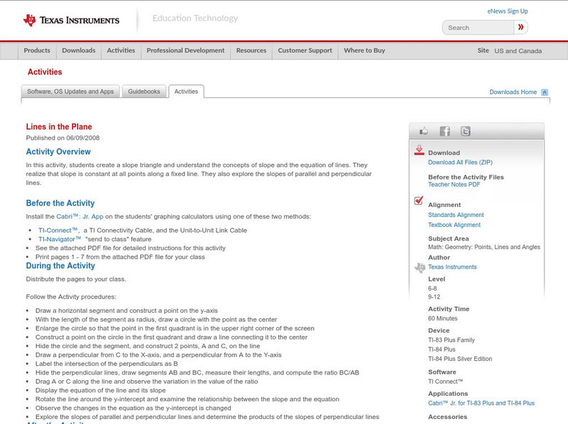 Texas Instruments: Investigating Parallel and Perpendicular Lines Using Cabri Jr
