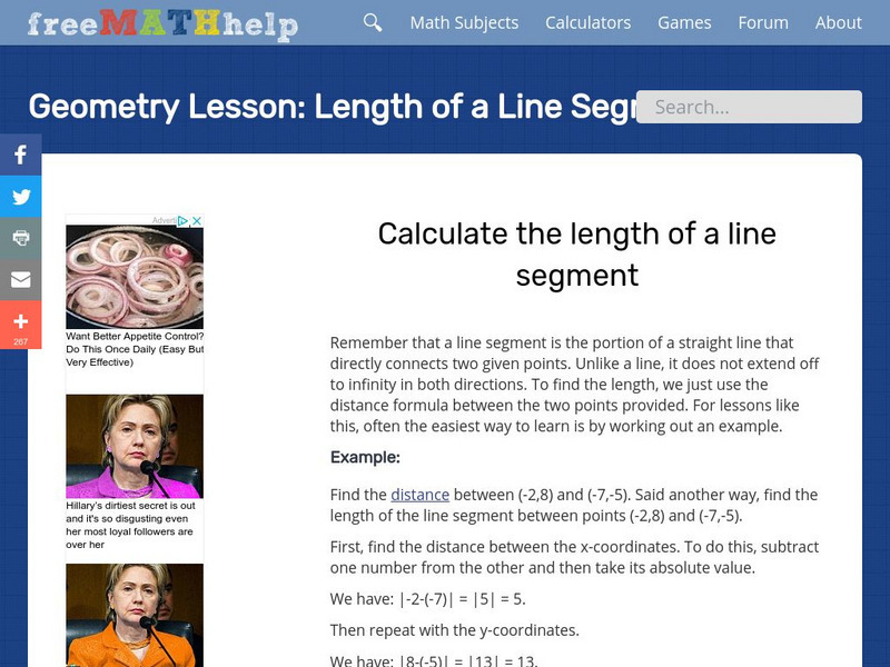 Varsity Tutors: Hotmath: Algebra Review: Lines, Segments, and Rays