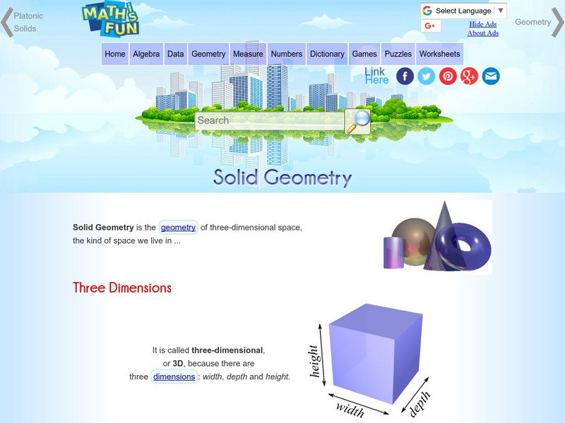 The learning resource examines solid geometry. Students learn about the concept through definitions, images, and examples.