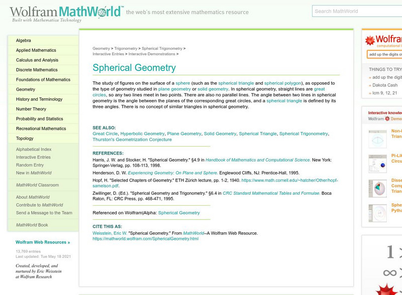Site provides a brief explanation of the discipline of Spherical Geometry along with many links to spherical geometry topics.