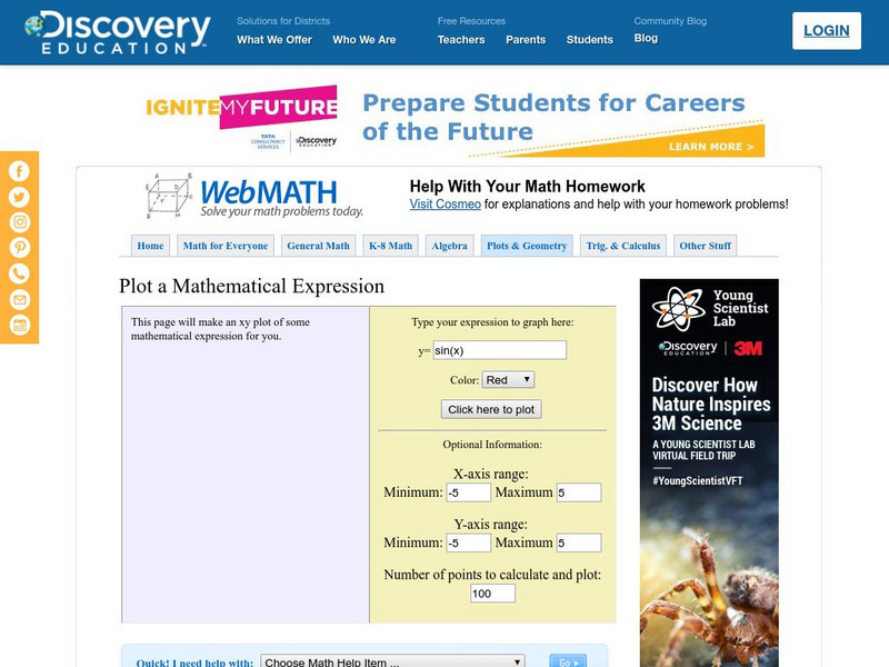 Discovery Education: Web Math: Plot of a Mathematical Expression
