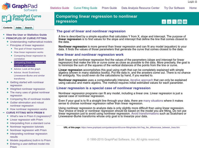 Graph pad.com: Comparing Linear Regression to Nonlinear Regression