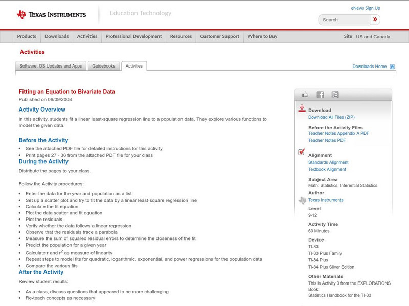 Texas Instruments: Fitting an Equation to Bivariate Data