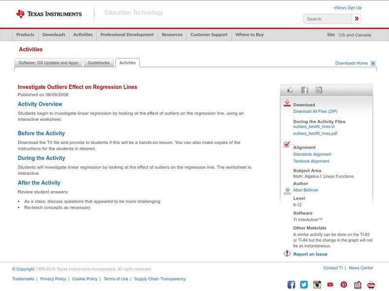 Texas Instruments: Investigate Outliers Effect on Regression Lines