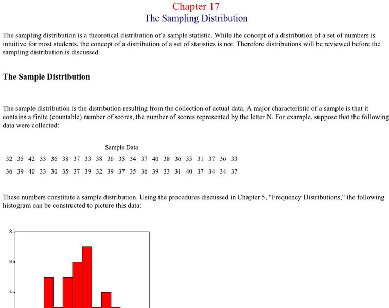 A review is provided at the start of this resource, then the more specific discussion of sampling distributions gets under way. Graphs are provided for ease in understanding the material.
