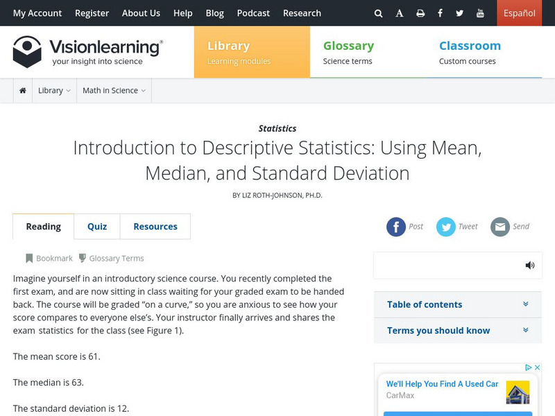 Visionlearning: Statistics: Using Mean, Median, and Standard Deviation