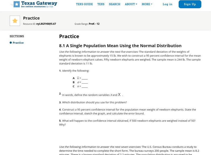 Texas Gateway: Tea Statistics: Confidence Intervals: Practice