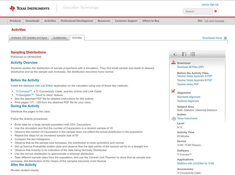Students learn about sampling distributions and the Central Limit Theorem. Topics explored are sample mean, population mean, and using the Central Limit Theorem. The tutorial investigates the statistics concepts through class notes and...