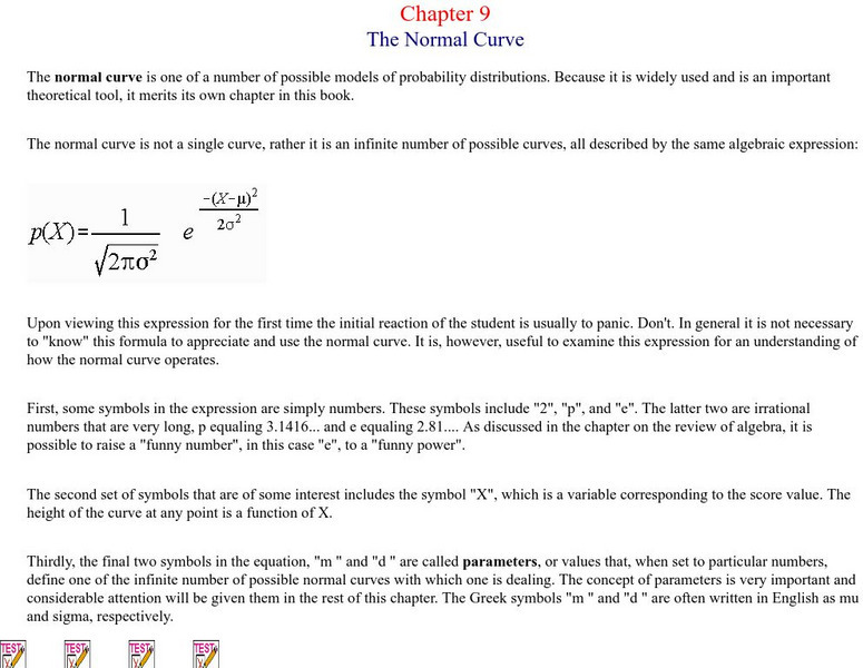 Provides a complete discussion of normal curves in statistics. Site is presented in notes with examples added as needed.