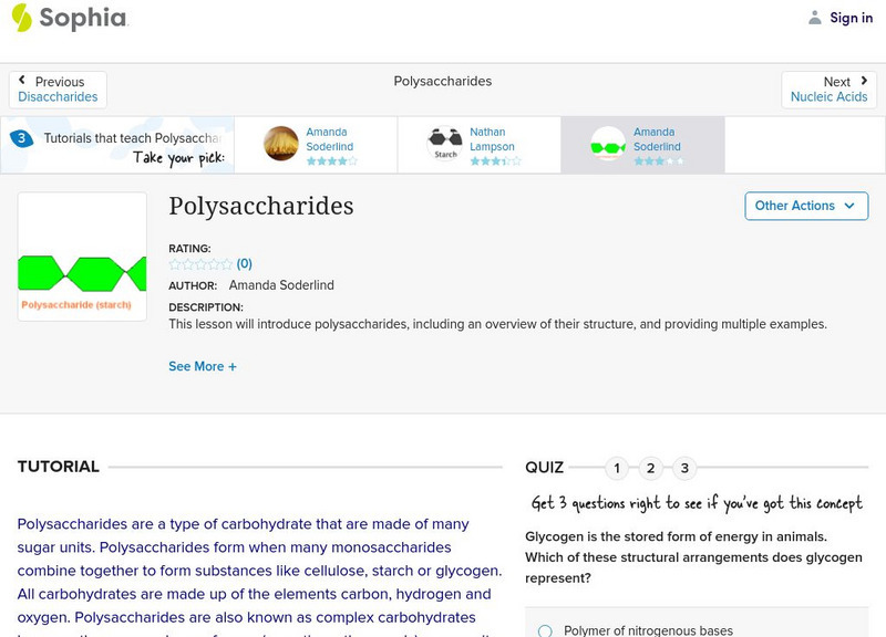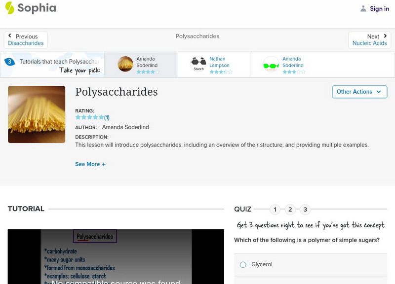 This lesson will introduce polysaccharides, including an overview of their structure, and providing multiple examples. It is 1 of 3 in the series titled "Polysaccharides."