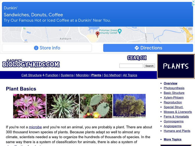 This biology site provides information on plant basics such as what makes a plant as well as what we can learn from plants.