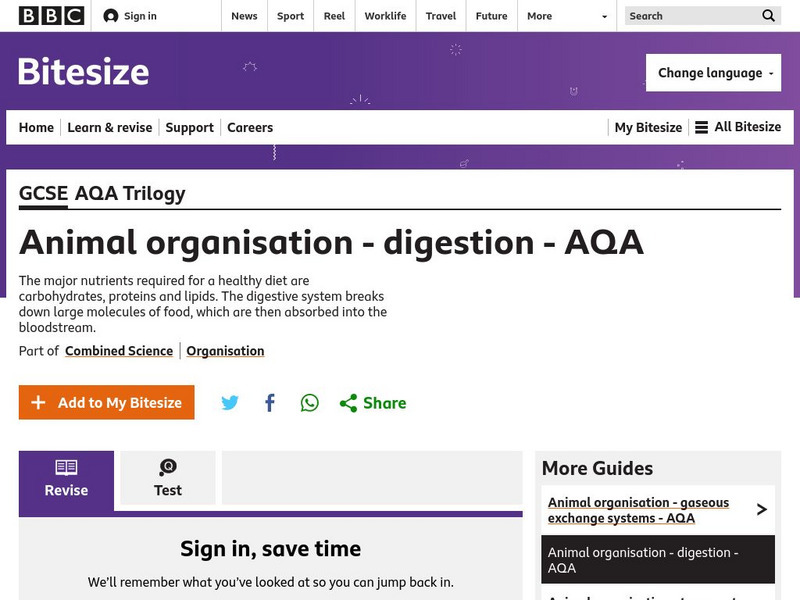 Bbc: Gcse Bitesize: Animal Organization Digestion Aqa