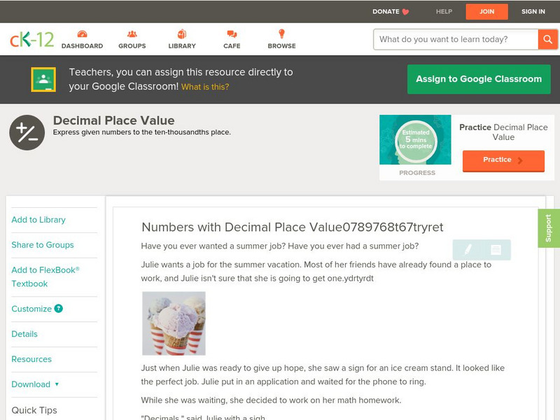 Ck 12: Arithmetic: Numbers With Decimal Place Value Grade 6
