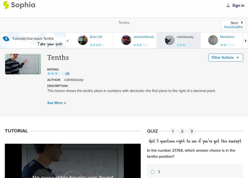 Students learn about the tenths decimal place value. The tutorial includes detailed examples.