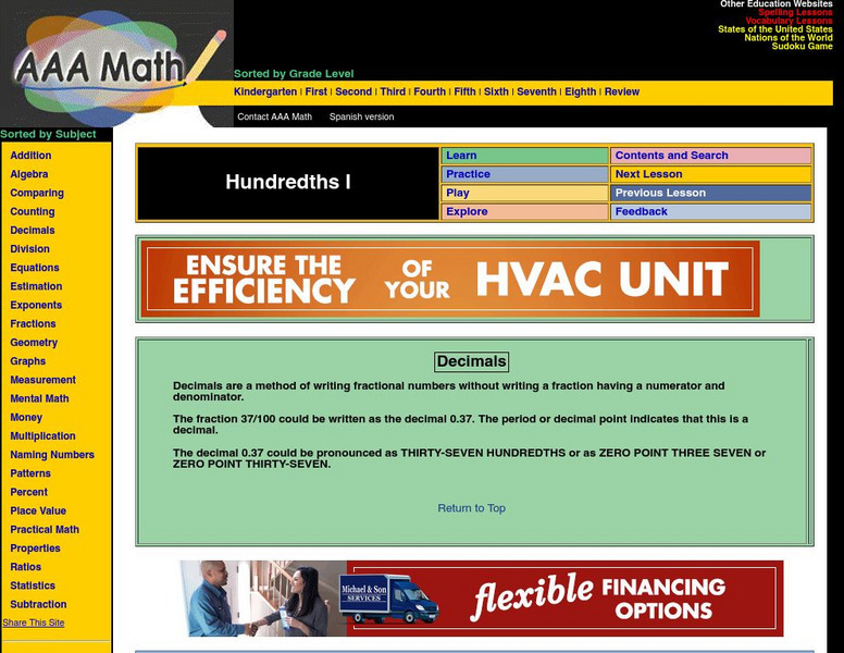 This tutorial explains how to identify hundredths place value. Gives problems and games to practice this skill.