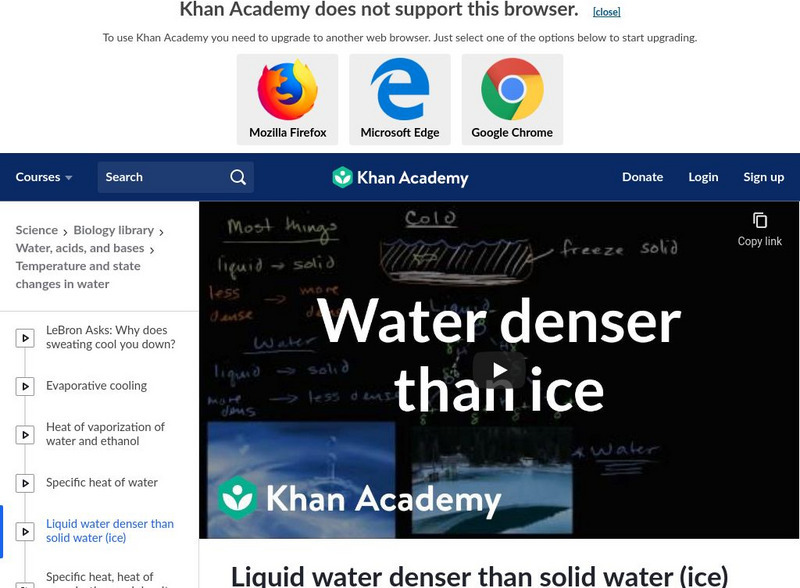 Khan Academy: Biology: Water, Acids, and Bases: Water Denser Than Ice