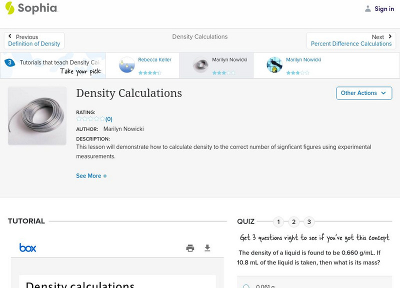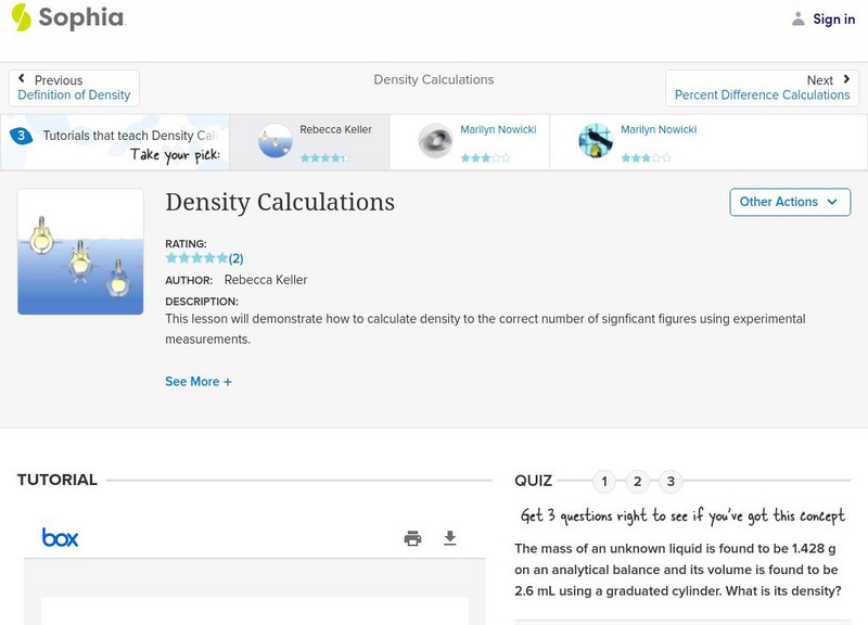 Sophia: Density Calculations: Lesson 3