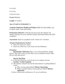 First graders learn healthy ways to express their feelings, needs and wants. In this bullying lesson plan, 1st graders read A Bad Case of the Stripes, discuss why the main character is getting bullied, dicuss why it's okay to be...