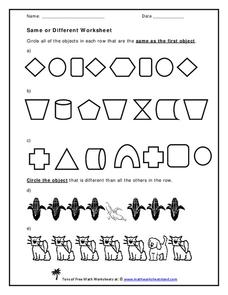 One of these animals is different, but which one is it? Pre-readers examine four sets of objects to determine and circle the one that is different. This isn't designed to trick your eye; scholars are looking for a horse standing amidst a...