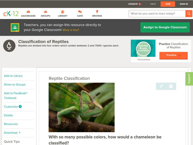 [Free Registration/Login may be required to access all resource tools.] Covers the four orders of reptiles and their characteristics.