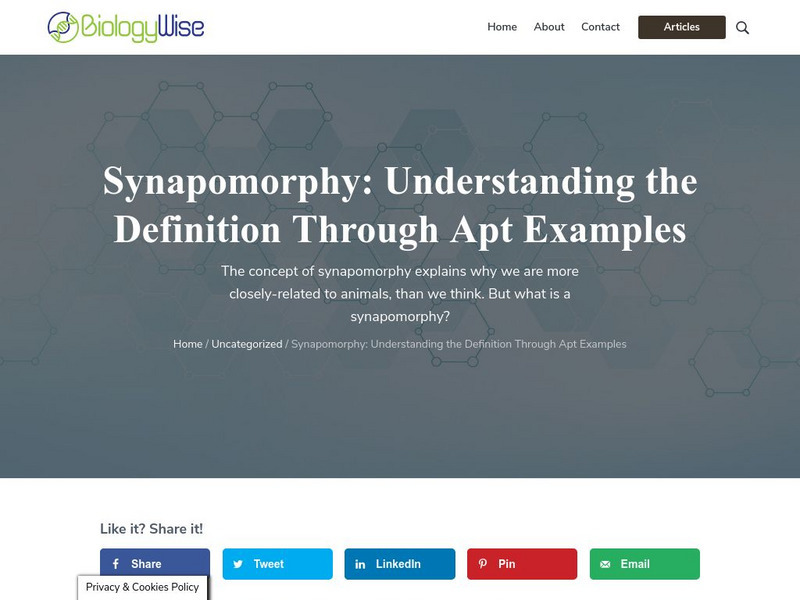 Explains what synapomorphy is by using examples to demonstrate the concept, which plays an important role in the system of cladistics.