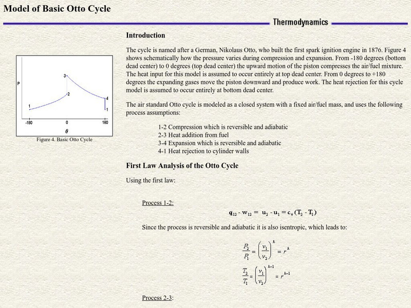 This site from the Colorado State University discusses the Otto cycle of a car engine. Includes a highly mathematical treatment of the efficiency of such engines. Includes a link to a java applet investigating the efficiency of such...