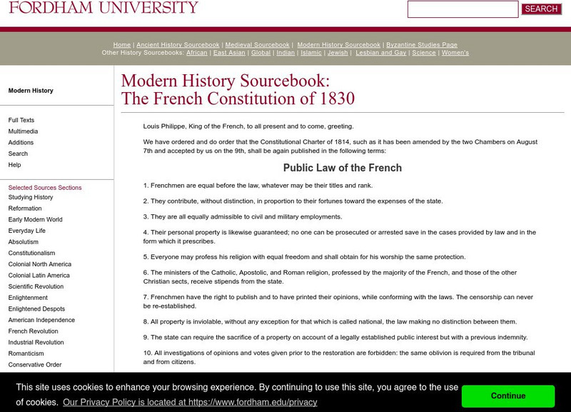 Fordham University: Modern History Sourcebook: The French Constitution of 1830