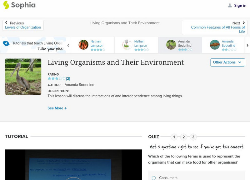 Sophia: Living Organisms and Their Environment: Lesson 4