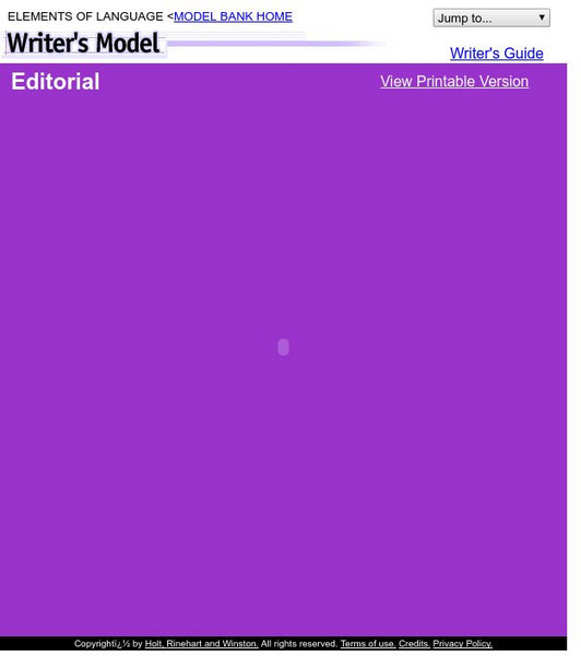 Holt, Rinehart and Winston: Writer's Model: Editorial Essay Example