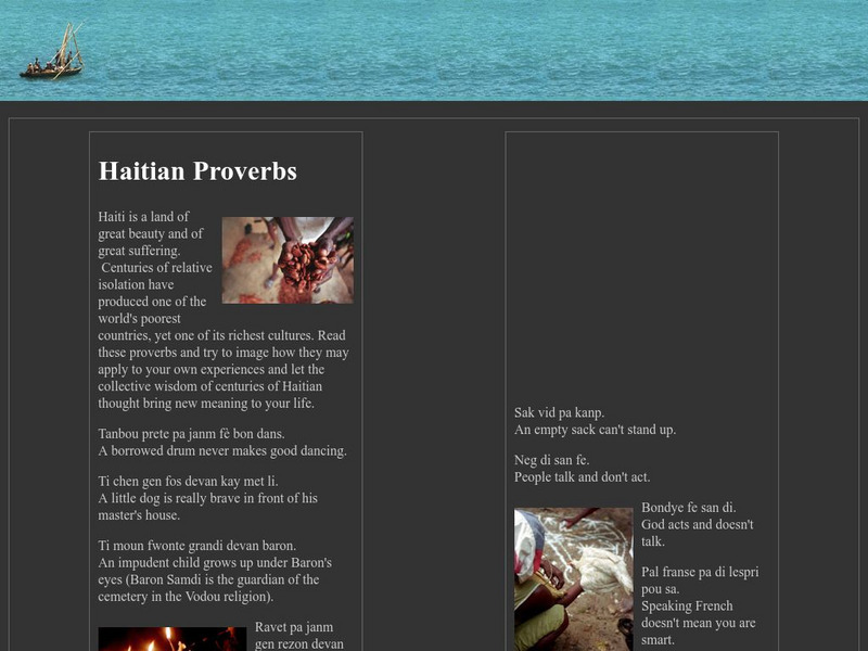 Like many cultures, Haitians pass along knowledge through proverbs and educate through riddles. This page is a collection of 30-35 proverbs, jokes, and -- as well as a tale or two -- and tips on how Haitians tell them.