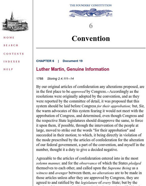 A speech given by Luther Martin, the delegate from Maryland to the Constitutional Convention. Martin was a believer is state's rights and did not sign the finished document.