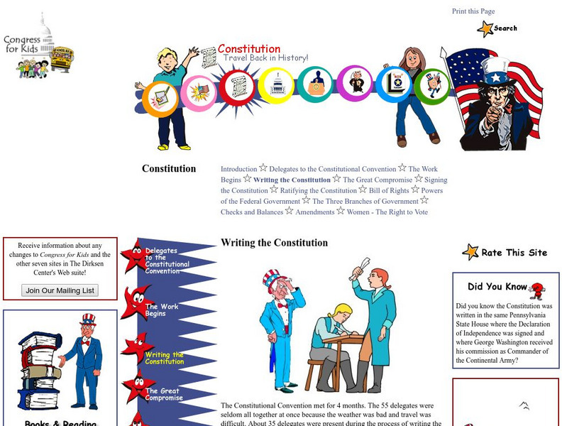 Read a short synopsis about the writing of the Constitution and then complete the crossword puzzle by clicking on the "show what you know" link.