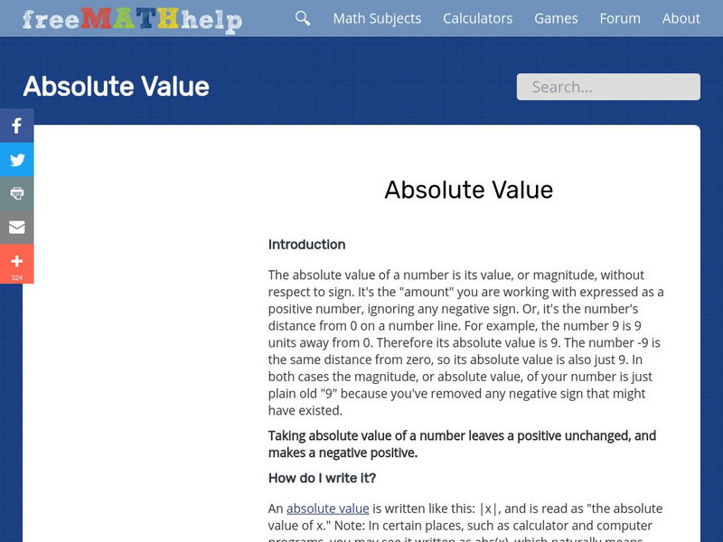 Students learn about the absolute value of a number. The lesson consists of definitions, examples, and additional resources.
