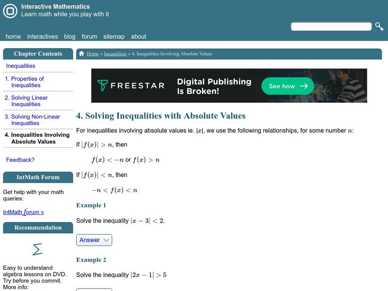 Interactive Mathematics: Solving Inequalities W/ Absolute Value