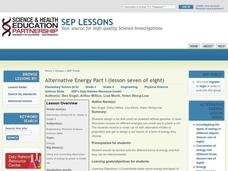 Young scholars identify the different sources of energy. In this energy lesson, students list different machines and identify the type of energy used to operate them. They create a diagram of a wind turbine and label its parts.