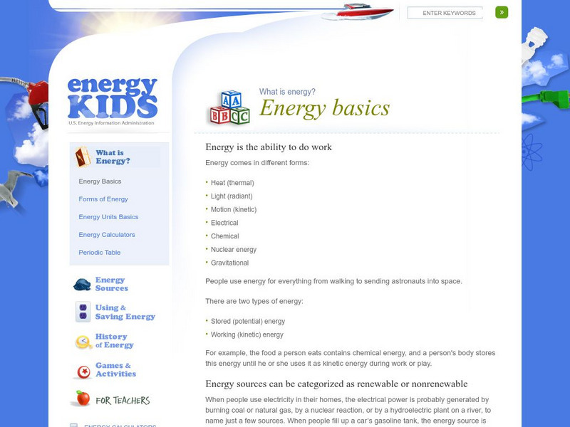 Government energy information site provides users with an understanding of what energy is, the forms of energy, energy efficiency, sources of energy as well as the Law of Conservation of Energy.