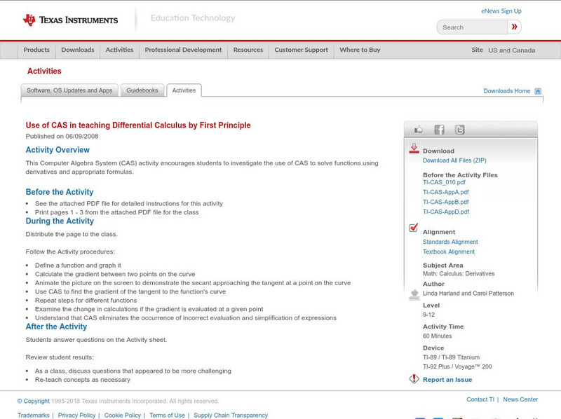 Texas Instruments: Use of Cas in Teaching Differential Calculus by First Princip