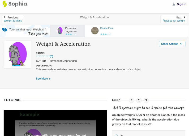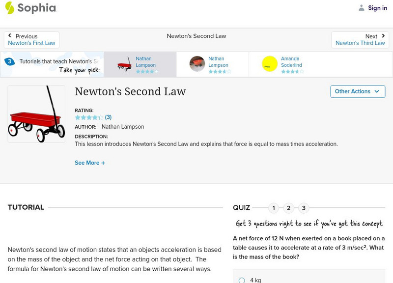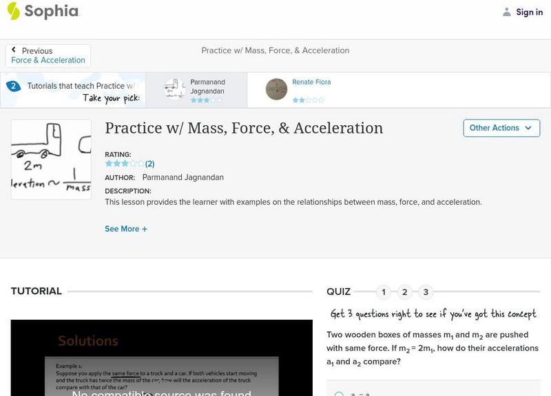 Sophia: Practice W/ Mass, Force, & Acceleration: Lesson 1