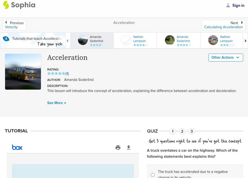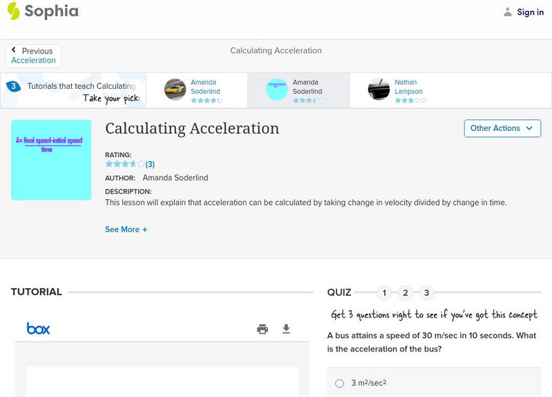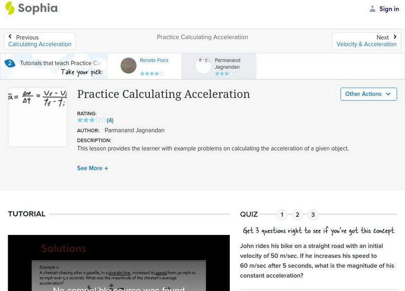 Sophia: Practice Calculating Acceleration: Lesson 1
