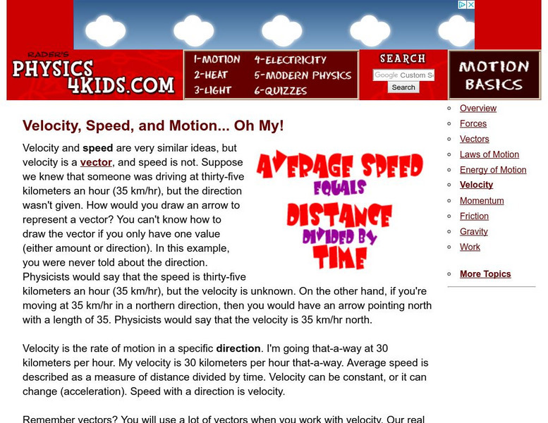 Physics4 kids.com: Velocity, Motion and Speed Oh My